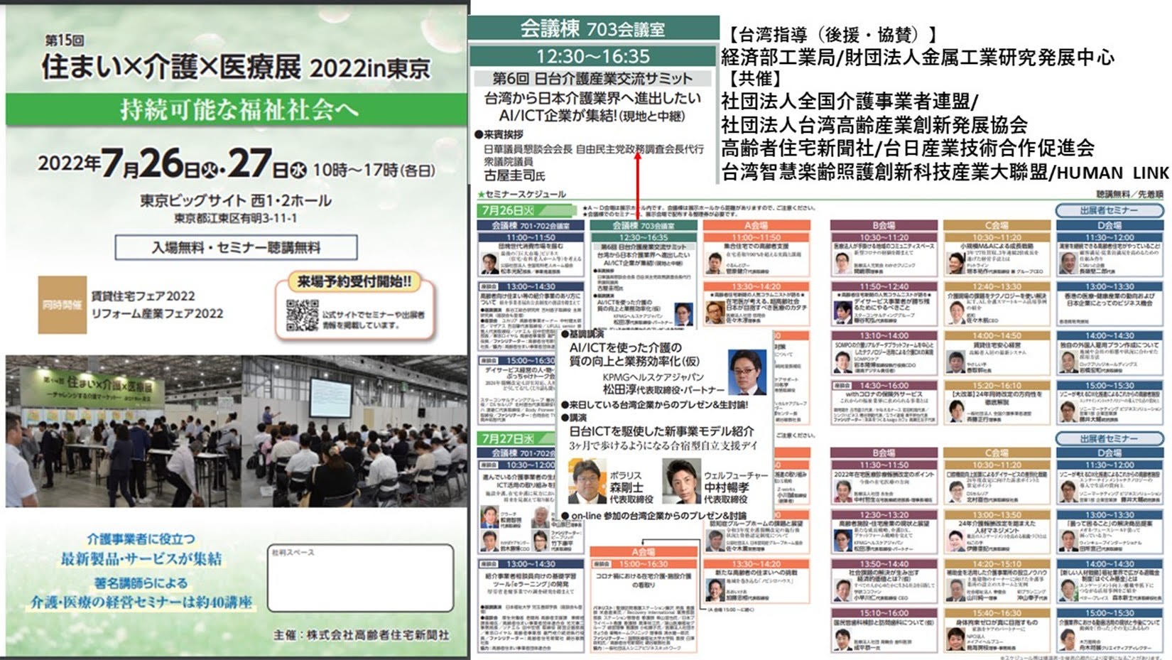 2022/7/26 本會與日本高齡者新聞設於東京 Big Sight共同舉辦「第六屆台日照護產業高峰會」日本場,