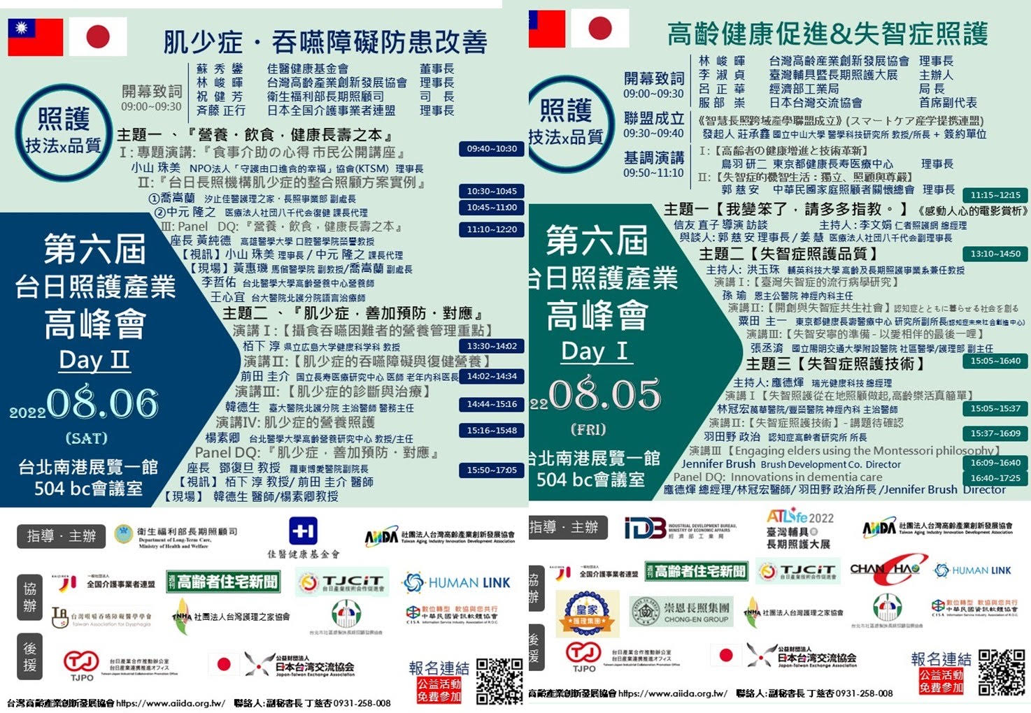 2022/8/5-6 本會於南港展覽館舉辦「第六屆台日照護產業高峰會」台灣場,