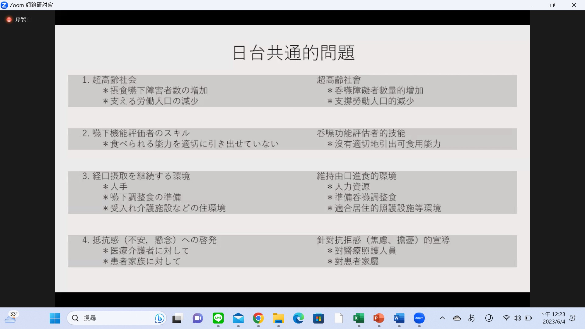 與KTSM 小山珠美 理事長、金沢英哲 副理事長,針對台日由口進食支援合作進行熱烈討論。