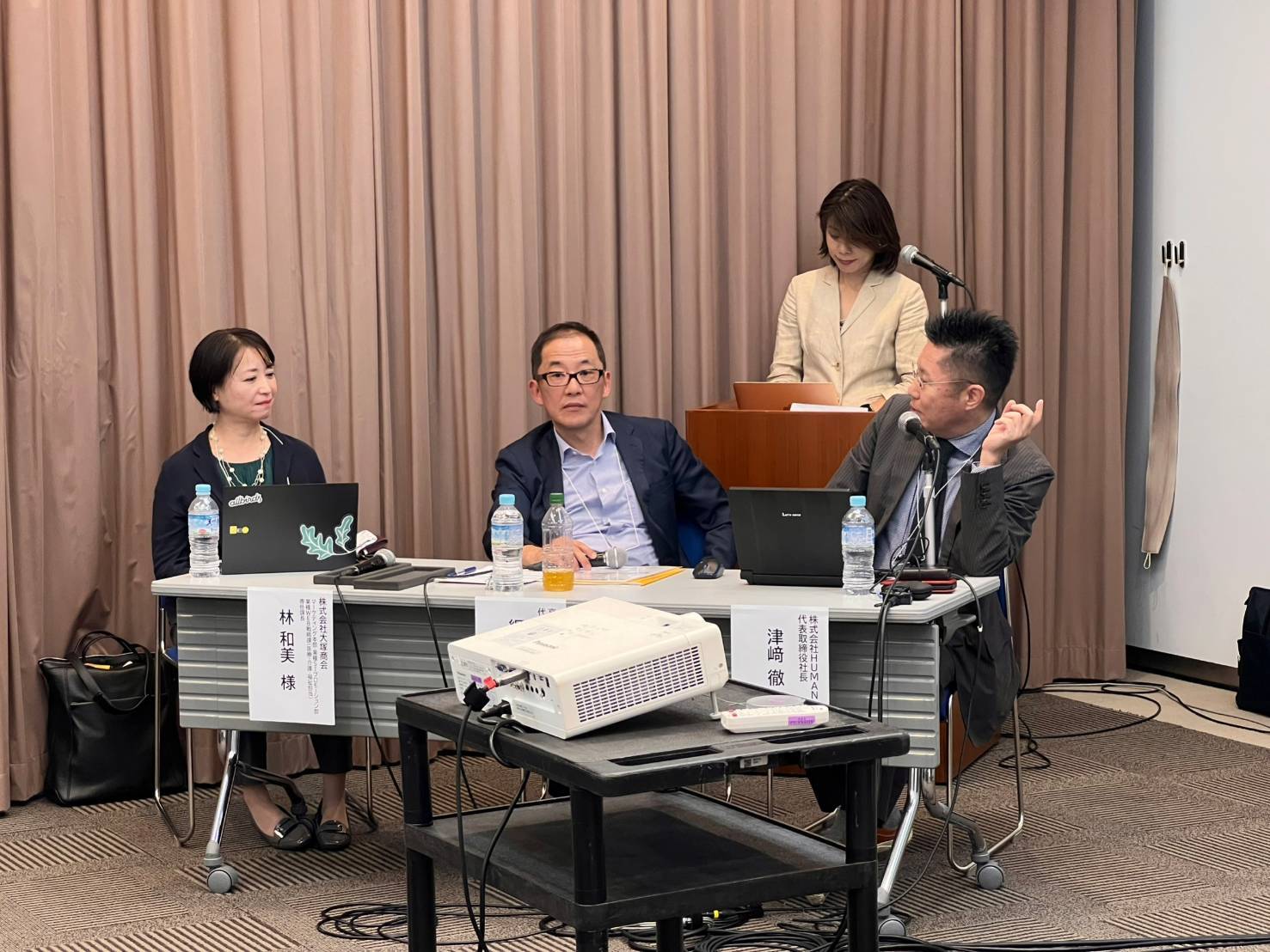 節目高潮由Human Link 津崎社長主持論壇,與談人有 楊馬田博士、林峻暉理事長、網谷敏數社長 和大塚商會市場本部林和美課長,就台日企業於高齡照護領域能產生互補效益的方向與策略,與現場與會約50位專家進行熱烈討論。