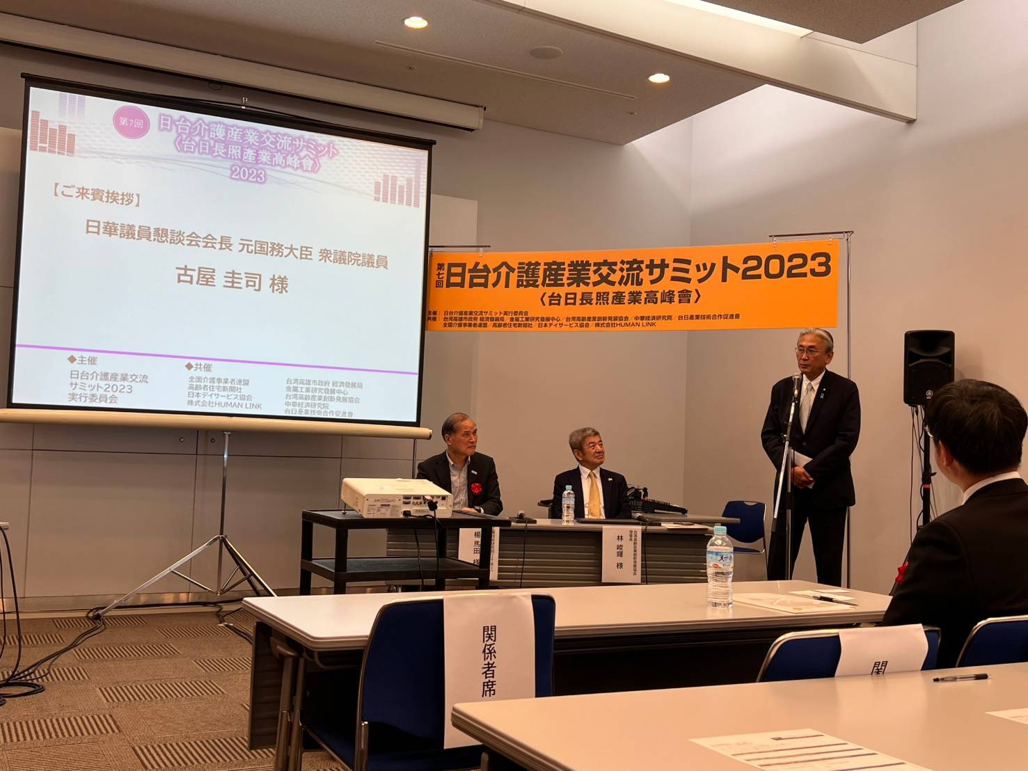 貴賓致詞邀請日華議員懇談會 古屋圭司眾議員和台北駐日經濟文化代表處經濟組 林春壽組長,發表對台日兩國照護產業往來之期許與支援之意。