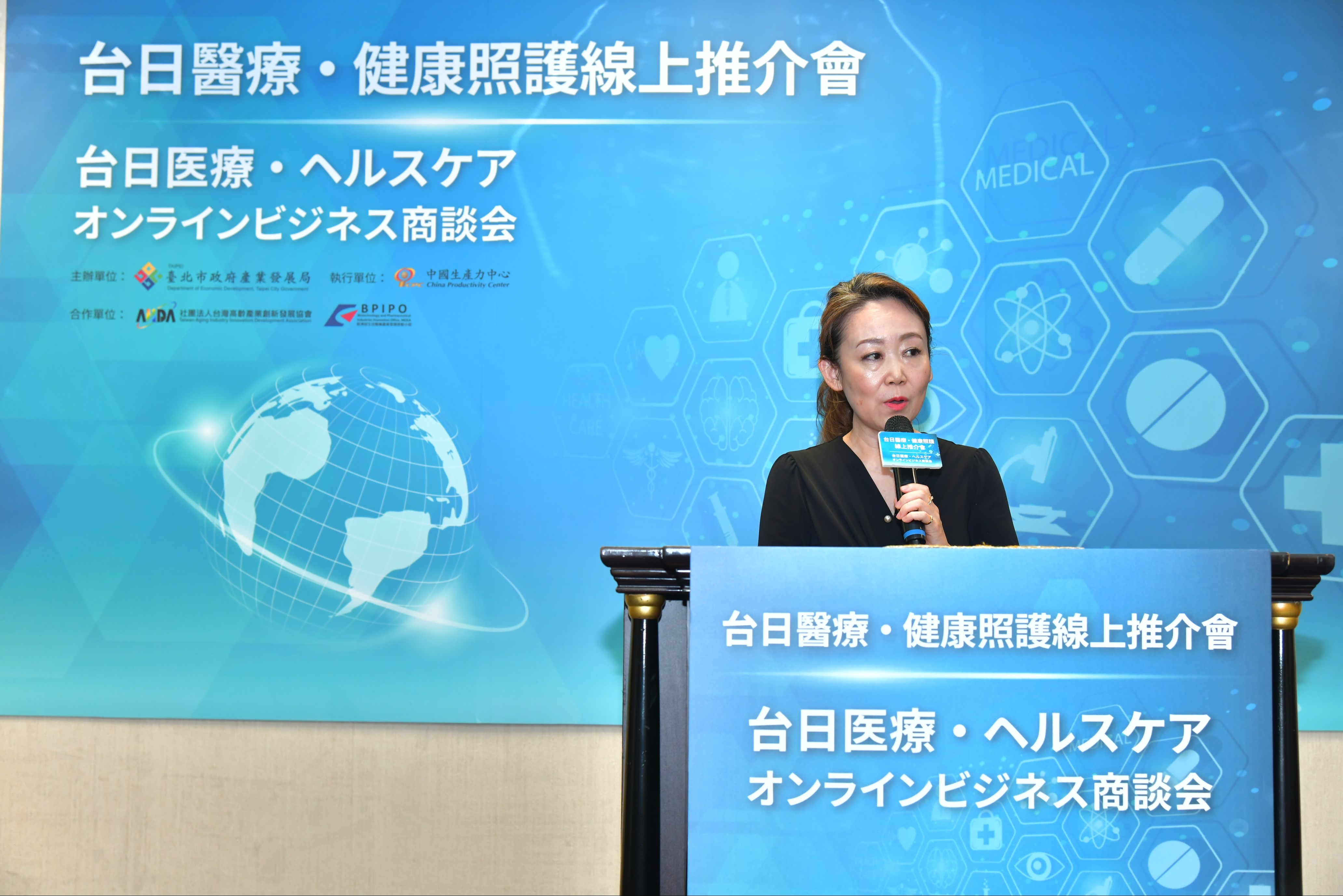為協助臺北市企業拓展海外市場並掌握數位轉型趨勢,臺北市政府產業發展局於去年建置「buy.taipei數位臺北館」,以常設館模式,促進線上與實體採購商機,並於今日辦理「台日醫療・健康照護線上推介會」,採線上與實體洽談同步進行方式,邀請11家日本醫療健康產業買家與參展廠商洽商,日本前50大的日本醫療法人八千代會姜慧副理事長及日立集團的智慧照護開發公司-株式會社NEU長谷川清社長更蒞臨現場擔任開幕貴賓致詞。