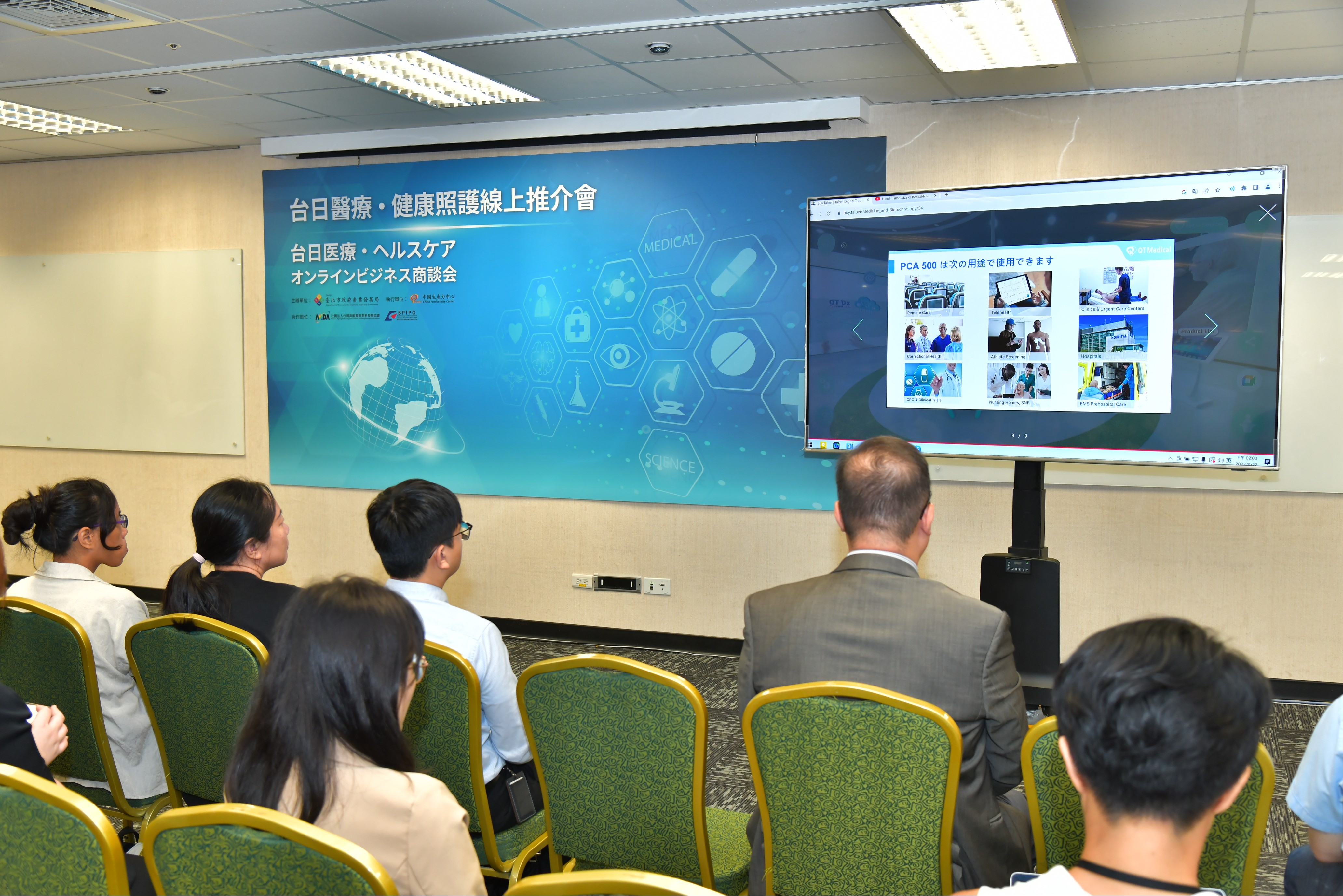 北市府長期支持生醫產業發展,投注資源促進醫療健康產業熱絡,為進一步迎接高齡社會健康福祉商機,本次「台日醫療・健康照護線上推介會」邀請共計16家北市業者共同參與,包括仁寶旗下子公司神寶醫資、慧誠智醫、聿信國際、龍骨王、優護平台等,並促成了33場次一對一媒合洽談會,展現本市健康照護產業的跨域新面貌,以及輸出國際的生醫新實力!
