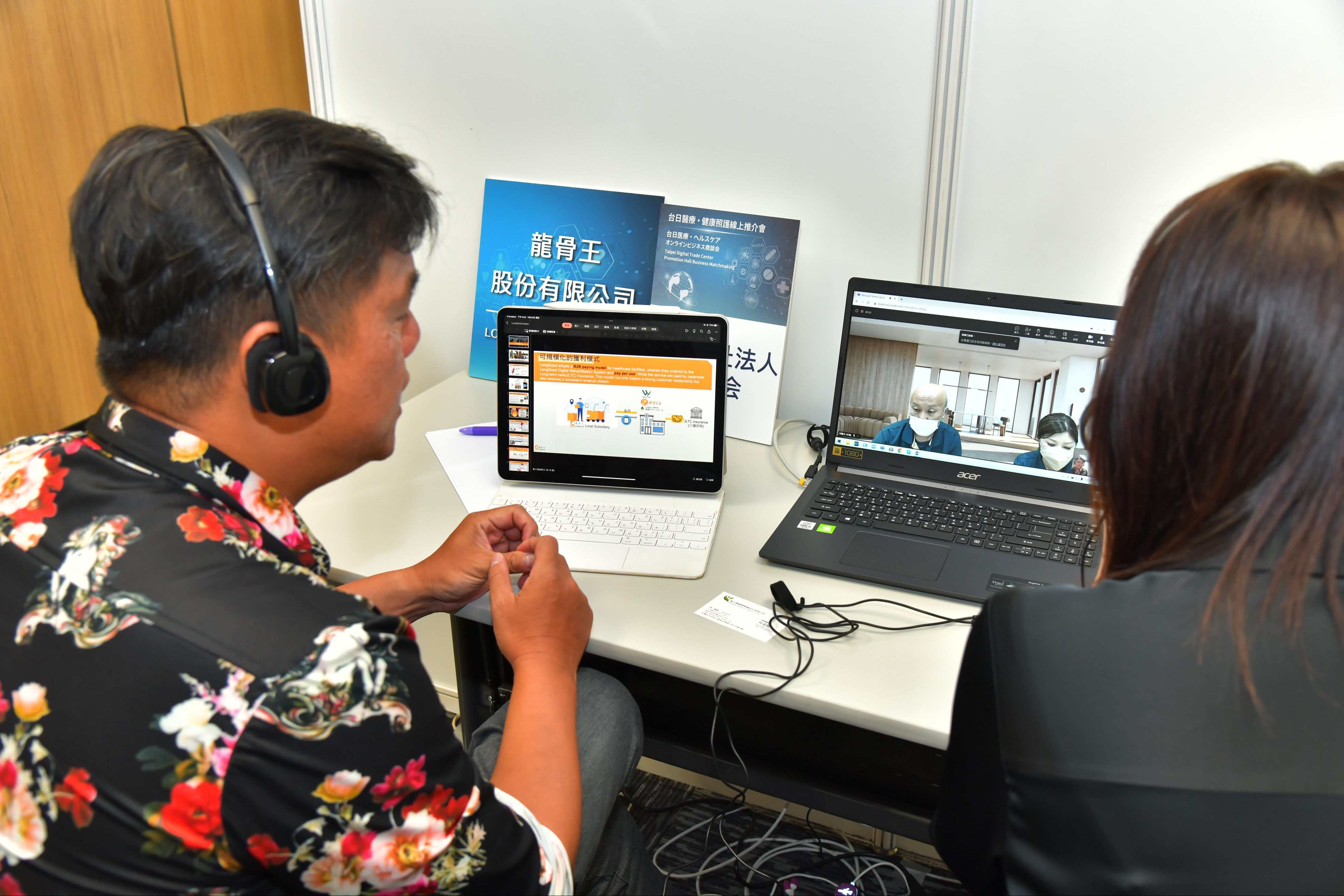 2023/09/22,本會於台北世貿中心協辦台北市政府『2023 BIO-ICT臺日線上推介會』,安排了「buy.taipei數位臺北館」生技館的業者們再次與日本醫療照護業者進行線上推介會,因應後疫情時代回復正式活動趨勢,本次活動同時邀請日本企業與醫療・照顧法人來台參與面對面商洽推介。(詳情請參閱下方臺北市政府產業發展局新聞稿)